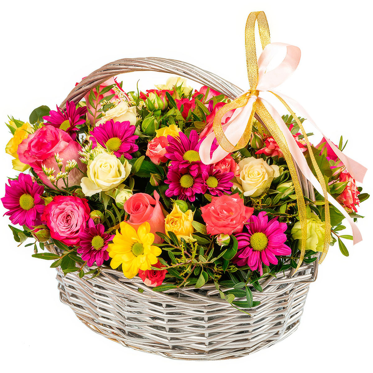 Корзина с цветами «Акварель» ждет вашего заказа: чтобы заказать цветы, оформляйте заказ на сайте за 2 минуты. Также можно заказать в Новосокольниках по телефону +7(993)431-06-99 или по почте kate@loveflowers24.ru.