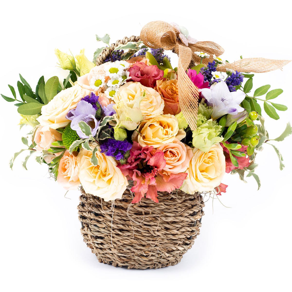 Корзина с цветами «Нектарные аккорды» с доставкой по г Новосокольники: вы можете заказать букет в салоне цветов «Флормания» по цене от 3590 руб.