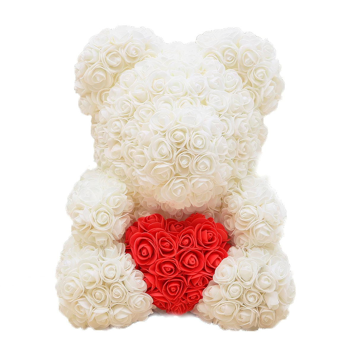 Мишка из роз бежевый с красным сердцем (40 см) с доставкой по г Новосокольники: вы можете заказать подарок в интернет магазине «Флормания» по цене за 5000 руб.