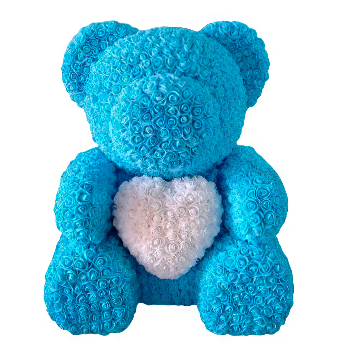 Мишка из роз голубой с белым сердцем (40 см) с доставкой по г Новосокольники: вы можете заказать подарок в интернет магазине «Флормания» по цене за 5000 руб.