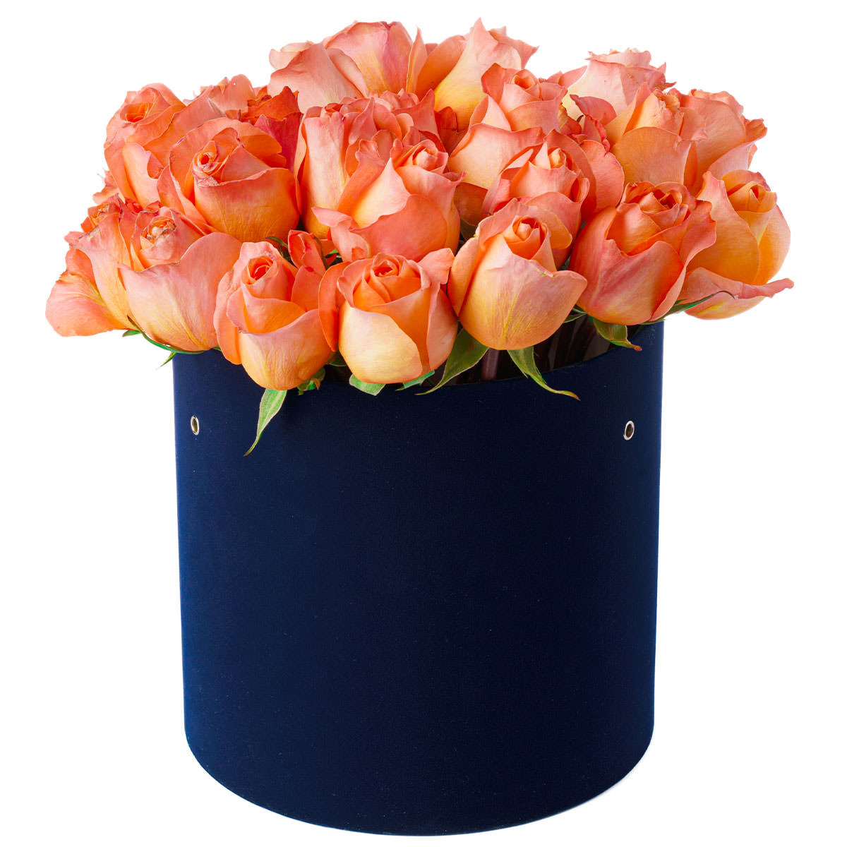 Роза одноголовая персиковая. Упаковка (шляпная коробка, квадратный бокс, коробка сердце, оазис)