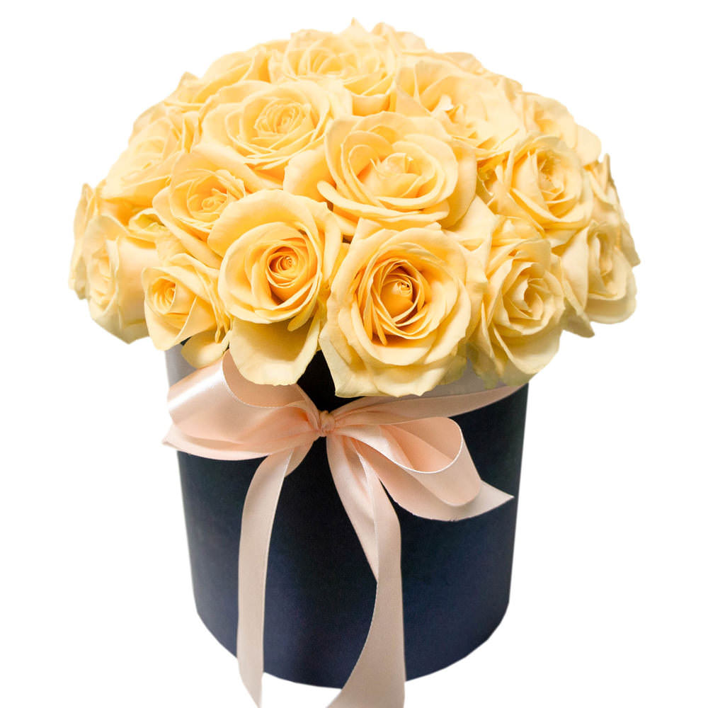Цветы в коробке «Кремовые розы» с доставкой по г Новосокольники: вы можете заказать букет в гипермаркете цветов «Флормания» по цене от 2990 руб.