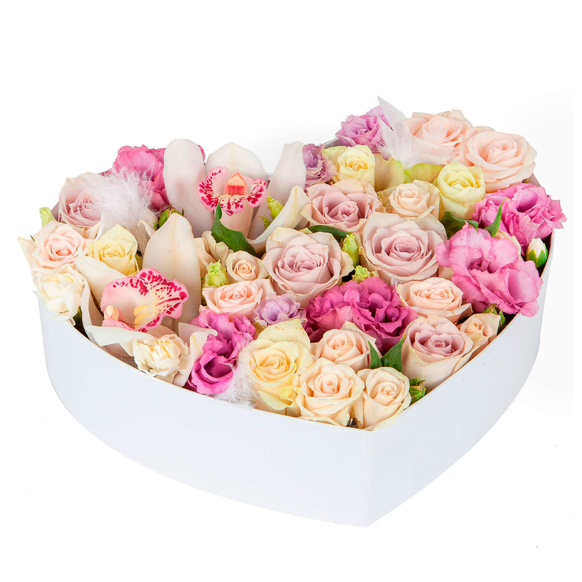 Цветы в коробке «Нежный флер» с доставкой по г Новосокольники: вы можете заказать букет в онлайн-магазине «Флормания» по цене от 2990 руб.