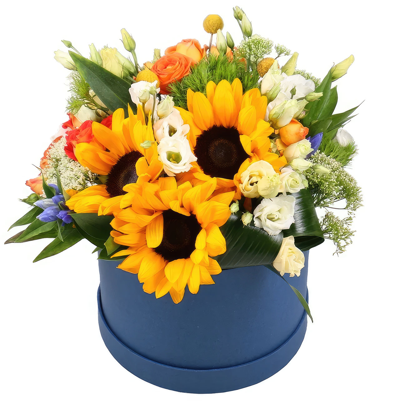 Цветы в коробке «Подсолнечное настроение» с доставкой по г Новосокольники: вы можете заказать букет в интернет-салоне цветов «Флормания» по цене от 2990 руб.