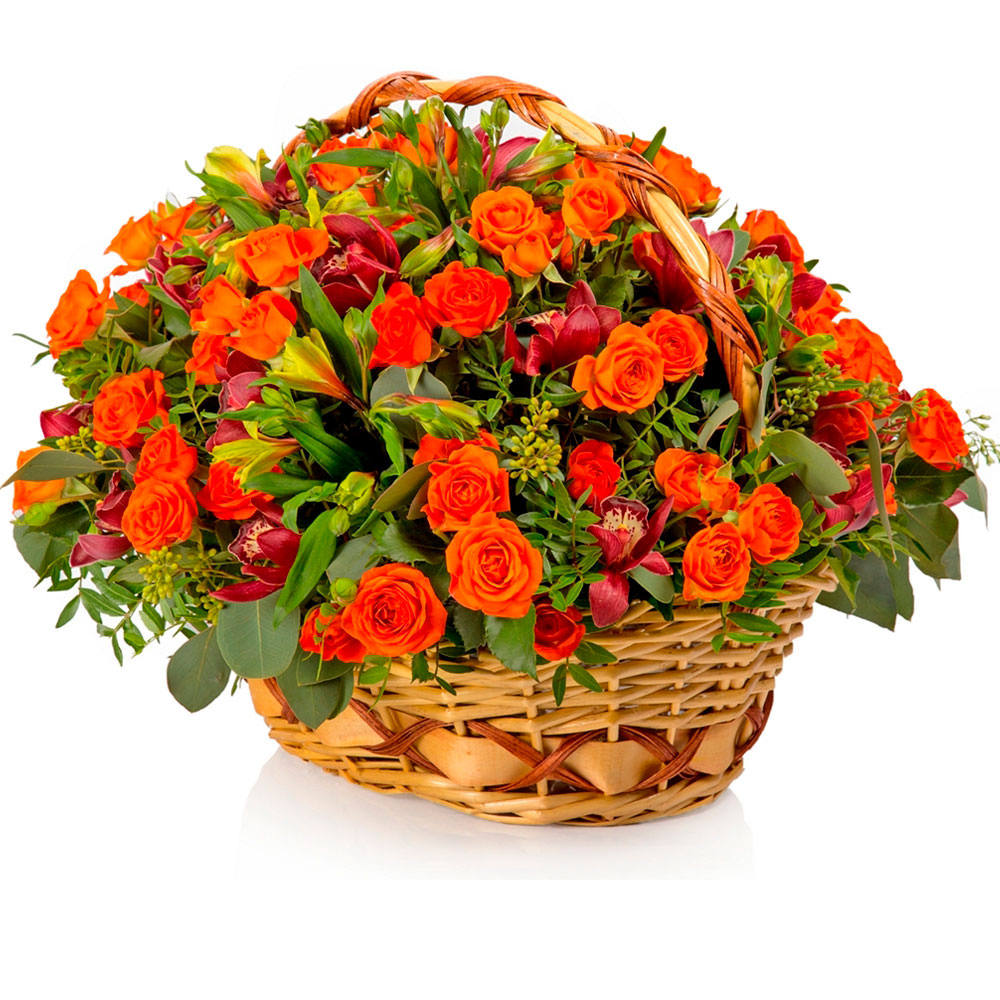 Цветы в корзинке «Алый закат» с доставкой по г Новосокольники: вы можете купить букет в цветочном супермаркете «Флормания» по цене от 3590 руб.