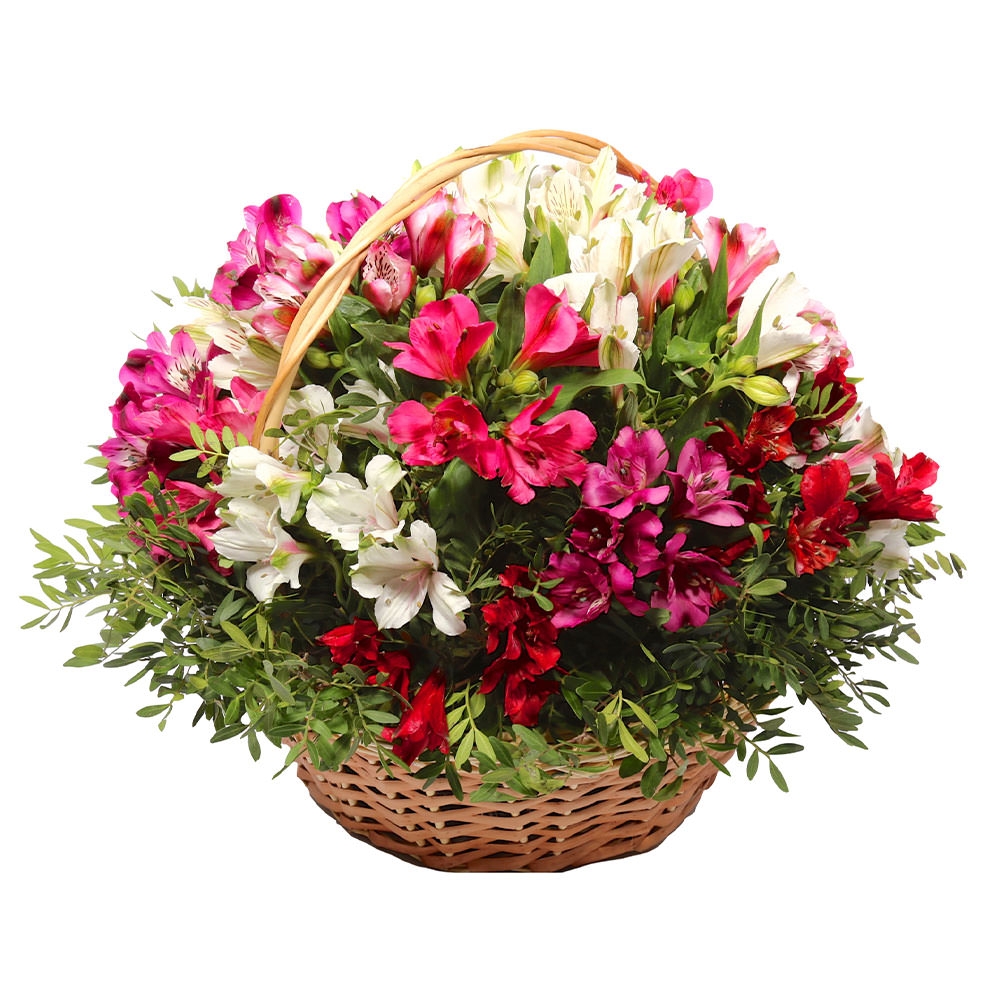 Цветы в корзинке «Краски альстромерий» с доставкой по г Новосокольники: вы можете купить букет в цветочном гипермаркете «Флормания» по цене от 3590 руб.
