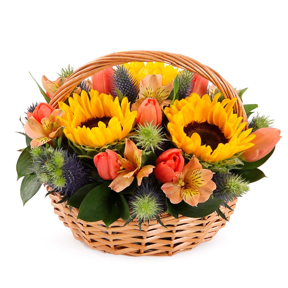 Цветы в корзинке «Солнечный день» с доставкой по г Новосокольники: вы можете купить букет в интернет-салоне цветов «Флормания» по цене от 3590 руб.